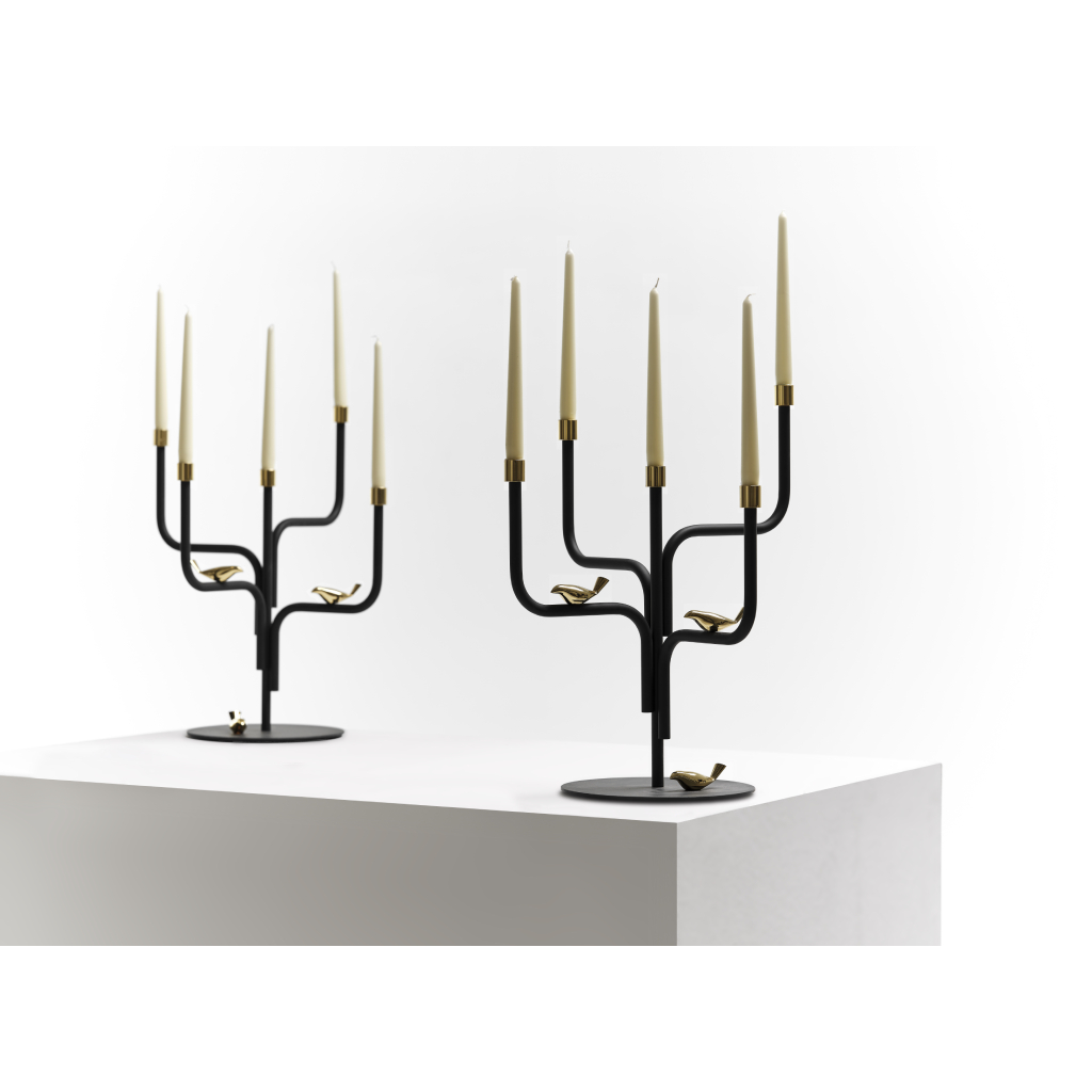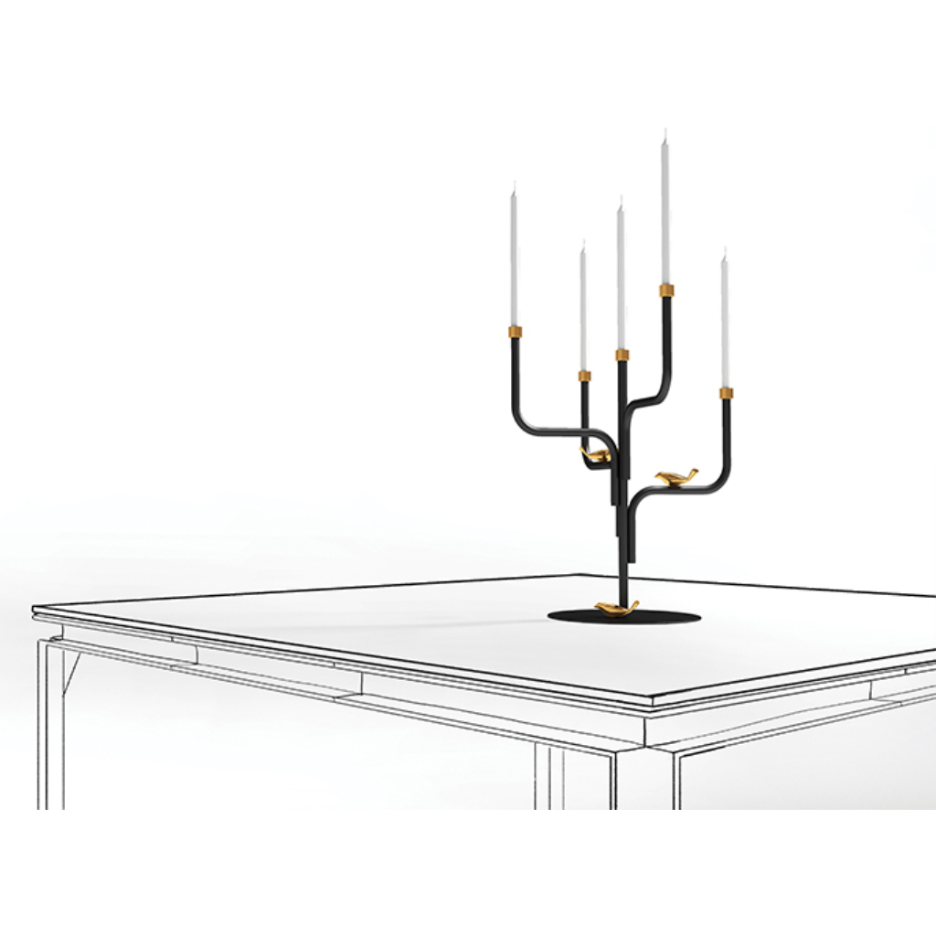 BIRD WATCH design ιταλικό κηροπήγιο 5 θέσεων από μέταλλο ανθρακί με πουλάκια από χυτή ορείχαλκο.