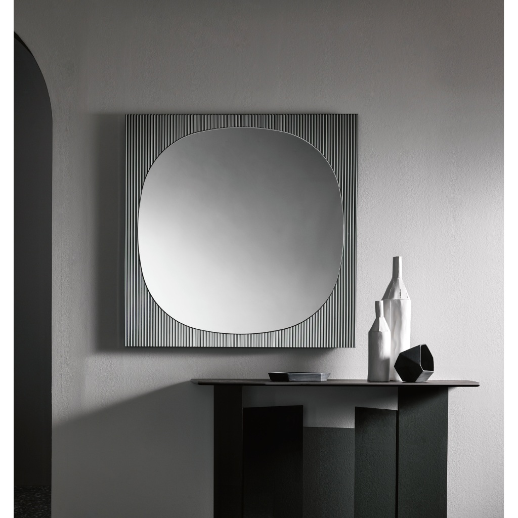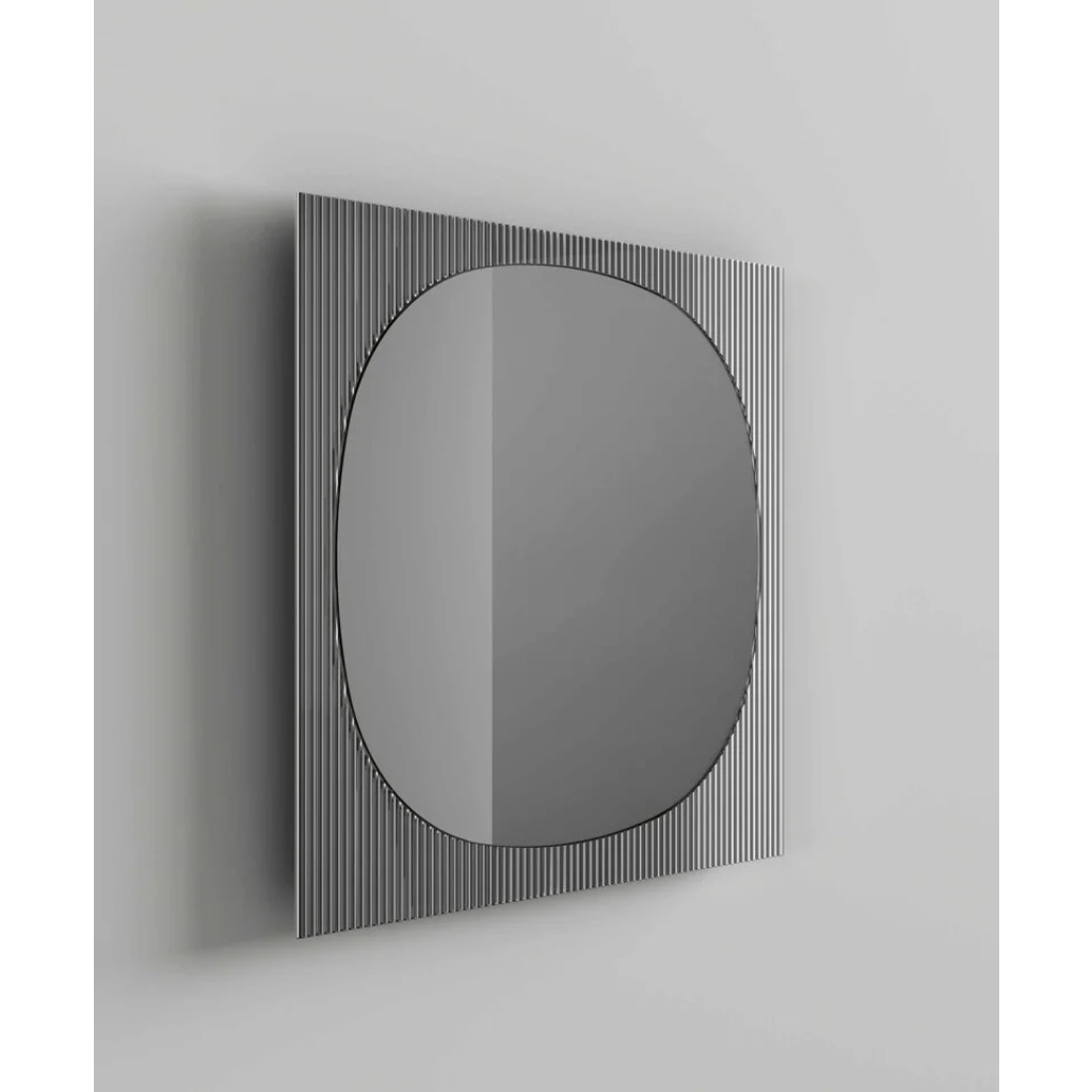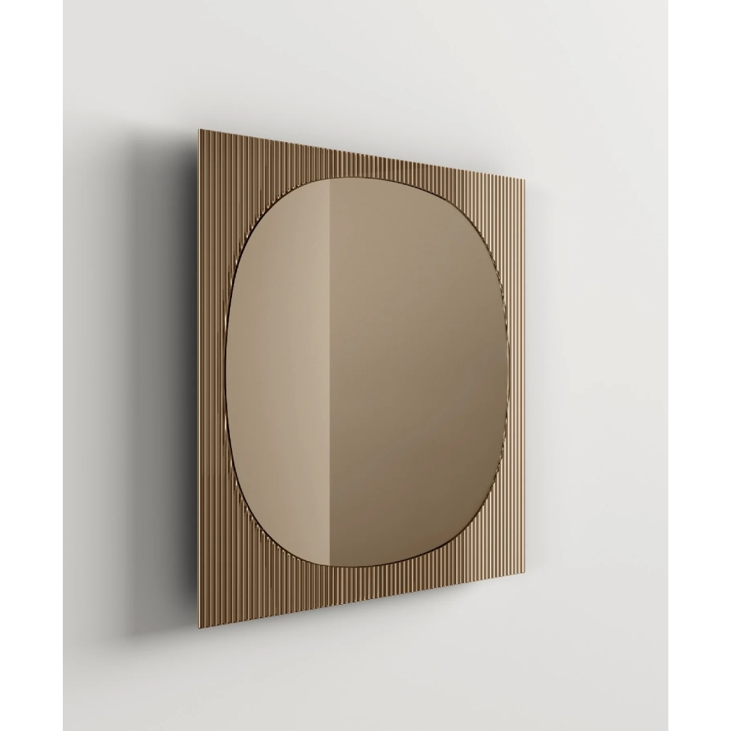 Η ιδιαιτερότητα του ραβδωτού γυαλιού στο πλαίσιο δημιουργεί μια συνεχή εναλλαγή ανάμεσα στην αντανάκλαση και τη διάθλαση. Οι κάθετες αυλακώσεις «αιχμαλωτίζουν» το φως του περιβάλλοντος χώρου, μετατρέποντας τις αντανακλάσεις σε μια ρυθμική, αρχιτεκτονική αλληλουχία γραμμών. Αυτός ο συνδυασμός υλικών προσφέρει μια απτή αίσθηση πολυτέλειας, καθώς η λεία επιφάνεια του κεντρικού καθρέφτη έρχεται σε άμεση αντίθεση με την ανάγλυφη υφή του περιγράμματος. Για την OIKADE, ο Bands Square είναι η ιδανική πρόταση για χώρους που απαιτούν ένα statement piece που να συνδυάζει την ιταλική δεξιοτεχνία με τη σύγχρονη αισθητική.