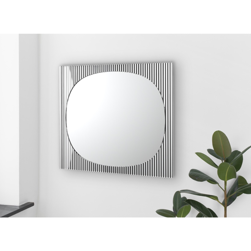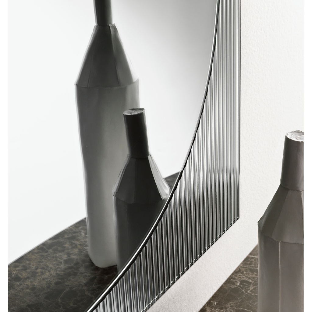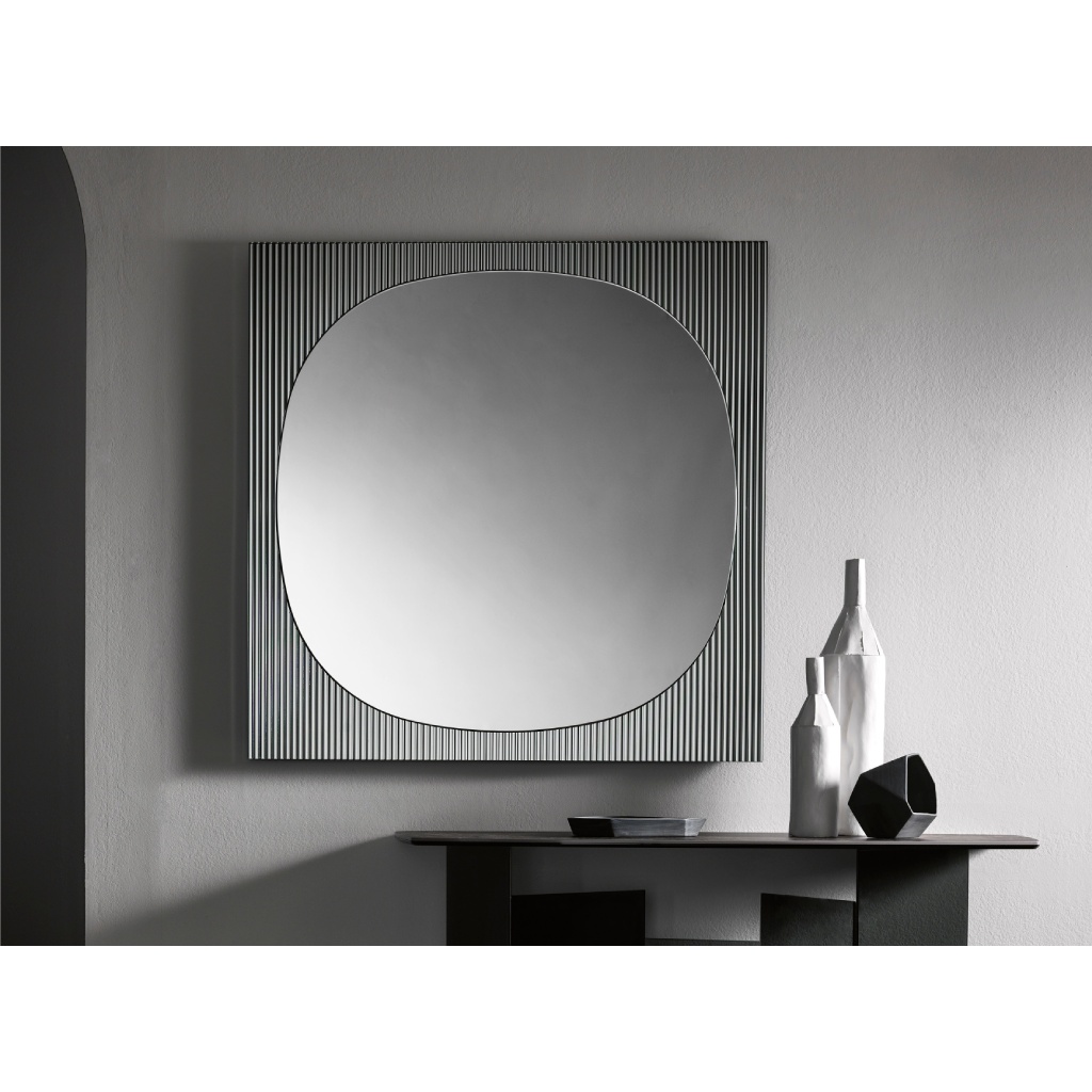 Η ιδιαιτερότητα του ραβδωτού γυαλιού στο πλαίσιο δημιουργεί μια συνεχή εναλλαγή ανάμεσα στην αντανάκλαση και τη διάθλαση. Οι κάθετες αυλακώσεις «αιχμαλωτίζουν» το φως του περιβάλλοντος χώρου, μετατρέποντας τις αντανακλάσεις σε μια ρυθμική, αρχιτεκτονική αλληλουχία γραμμών. Αυτός ο συνδυασμός υλικών προσφέρει μια απτή αίσθηση πολυτέλειας, καθώς η λεία επιφάνεια του κεντρικού καθρέφτη έρχεται σε άμεση αντίθεση με την ανάγλυφη υφή του περιγράμματος. Για την OIKADE, ο Bands Square είναι η ιδανική πρόταση για χώρους που απαιτούν ένα statement piece που να συνδυάζει την ιταλική δεξιοτεχνία με τη σύγχρονη αισθητική.