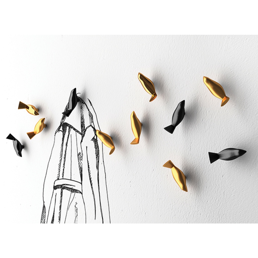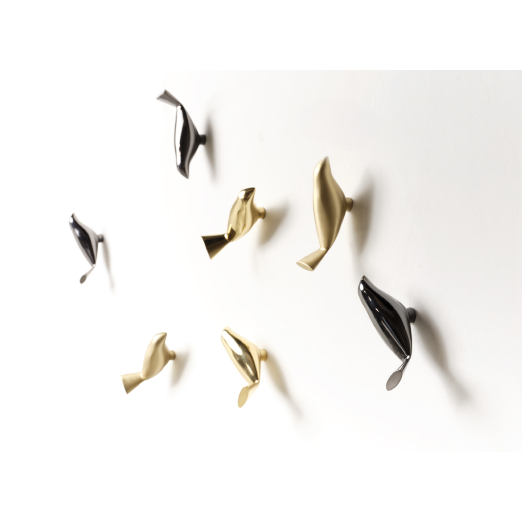 Bird Watch design ιταλικές κρεμάστρες τοίχου 4 τεμαχίων σε φινιρίσματα χυτού ορείχαλκου, χρυσού και μαύρου νίκελ.