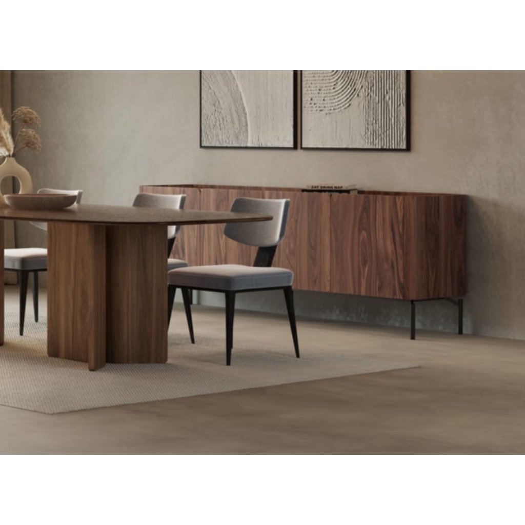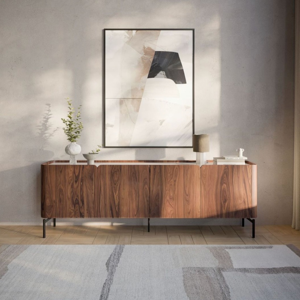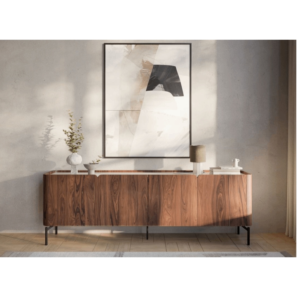 Curve: Where Nature Meets Modern Sculpture The Curve buffet is a work of art that offers functional storage. Its main feature is the curved shape on the front and sides, lending an organic, airy feel to the room. Body Materials: The body is available in premium veneer (Walnut, Oak, Smoked Eucalyptus) or lacquer (in a wide variety of colors). Top: Dual Style Choice: For the surface, you can choose either the uniform warmth of a wood veneer top (to seamlessly match the body) or the ultra-durable MaxFine ceramic in luxurious patterns (like Calacatta or Sahara Noir and others). The slim, metal base with electrostatic paint completes the look, ensuring sturdiness and timeless design. . |