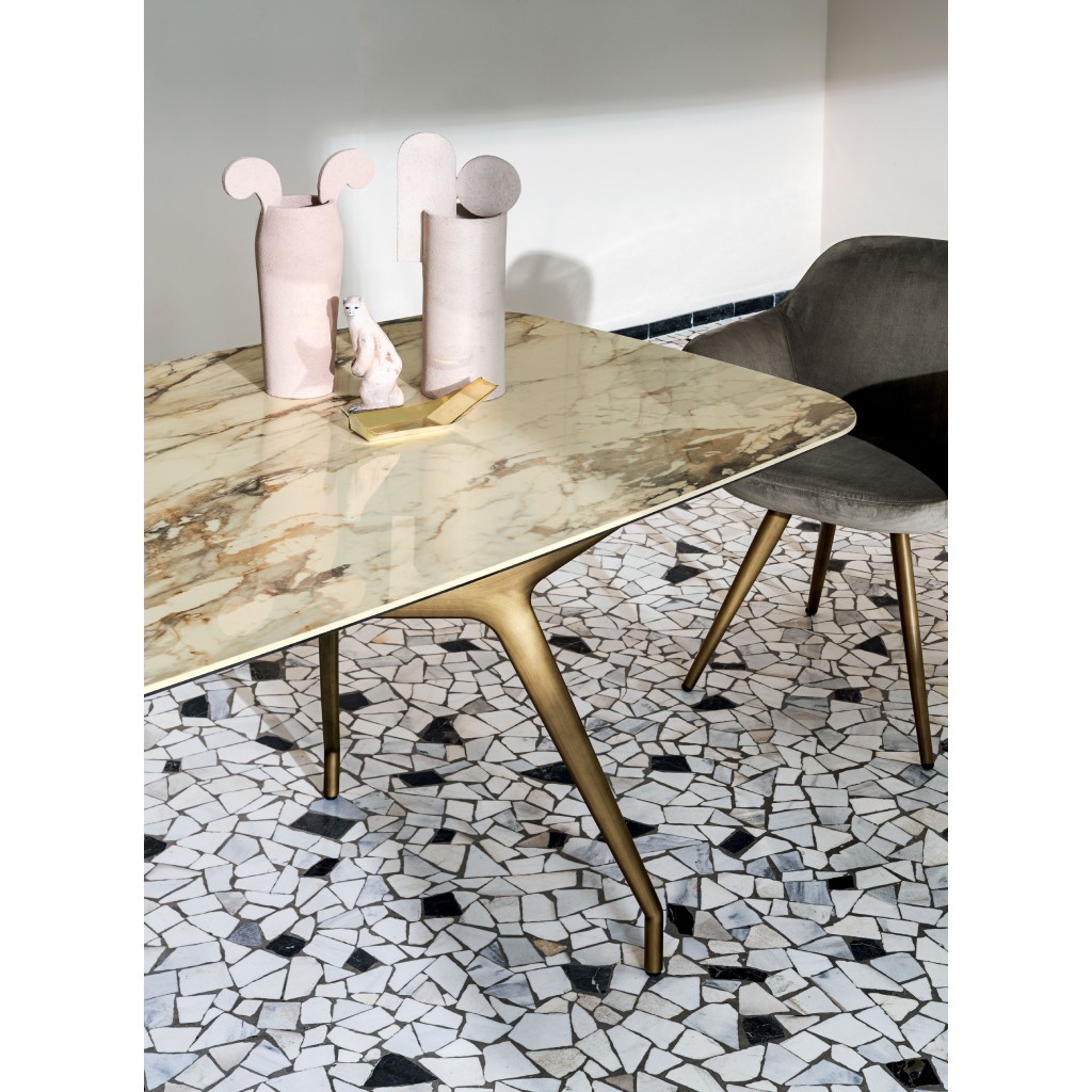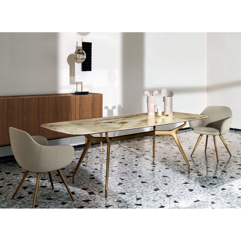The ARKOS Oval Shaped 02 Dining Table is the second, slimmer version of the shaped Arkos series, offering a dynamic design that can be integrated even into more limited spaces. Its slim, oval-parallelogram line retains the aesthetic of the '50s, while the material options make it ideal for any contemporary interior. Design & Dimensions: The Shaped 02 model has a fixed width of 93cm or 100cm (for the larger sizes) and is available in 5 fixed sizes: 180x93x75h, 200x93x75h, 220x93x75h, 260x100x75h and 300x100x75h cm. Ceramic Top: The ceramic surface is available in 2 types of Ceramics (CE1 - CE2 ) in glossy and matt finishes as: Ceramica travertino stone beige, Ceramica Breccia Reale, Ceramica Calacatta prelucidata, Ceramica Black Gold, the impressive Ceramica Antique and many others, offering variety in look and texture. IMPORTANT CLARIFICATION: Due to the complexity of the oval shaped form in the large dimensions, not all material options are available in all sizes. Please contact us to confirm your desired configuration. Dimensions: