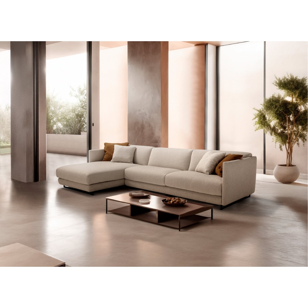 The defining feature of Costa is the "lightness" it radiates. Its slender base, combined with elegant metal legs, creates a striking sense of suspension, making the sofa appear less bulky despite its generous dimensions. The sharp, clean lines of the armrests and backrest define a sleek profile that perfectly fits contemporary environments, while meticulous stitching highlights its Italian heritage.