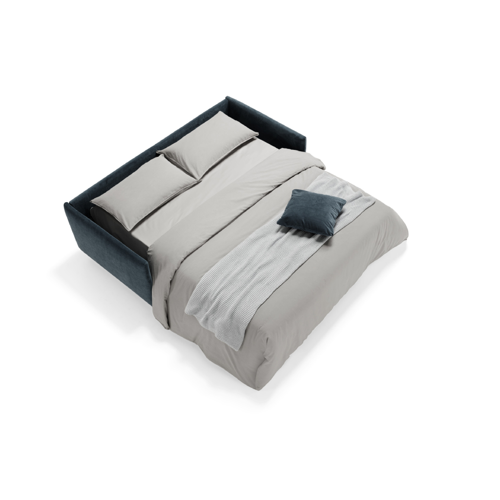 Despite its minimalist character, Costa makes no compromises on comfort. The seating is welcoming and ergonomic, providing the necessary support for daily relaxation. As a sofa bed, it utilizes an advanced mechanism that reveals a 13 cm high mattress (standard), ensuring that the sleeping experience is just as high-quality as that of a traditional bed.