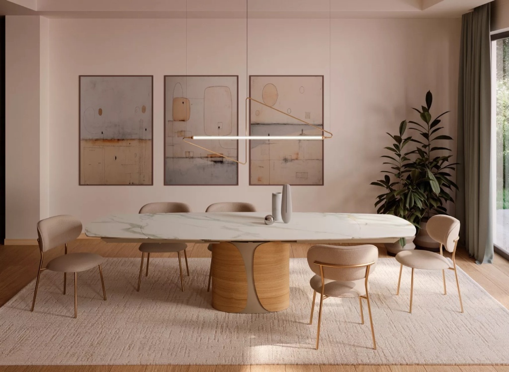 - Κεραμικές Τραπεζαρίες: Η Bontempi Casa και η Dallagnese πρωτοπορούν με κεραμικές επιφάνειες (SuperCeramic & SuperMarble) που προσφέρουν την απόλυτη αντοχή στη σκληρή καθημερινή χρήση, διατηρώντας την πολυτέλεια των φυσικών πετρωμάτων.