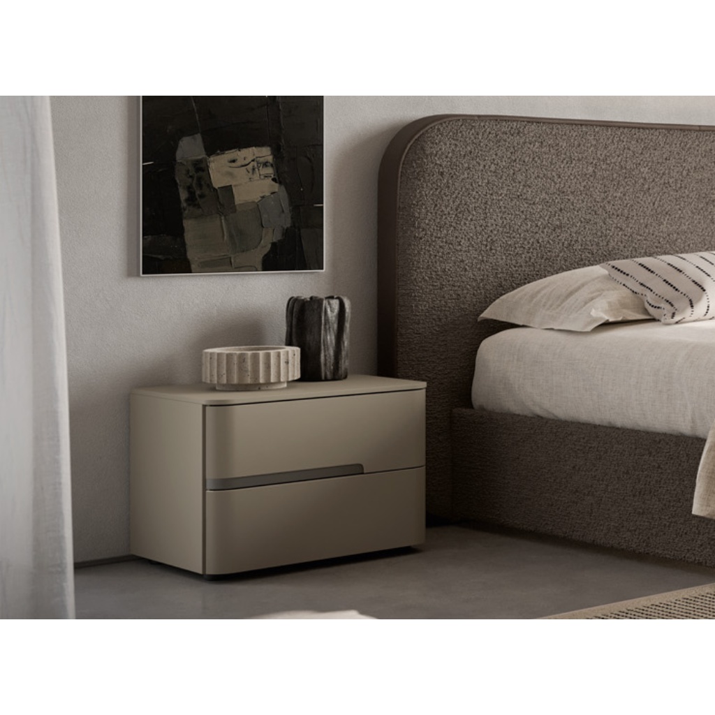 Κομοδίνο Opale: Σύγχρονη Κομψότητα με Στρογγυλεμένες Γωνίες και Ξύλινο Insert