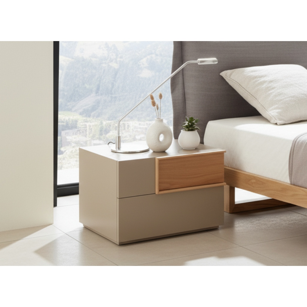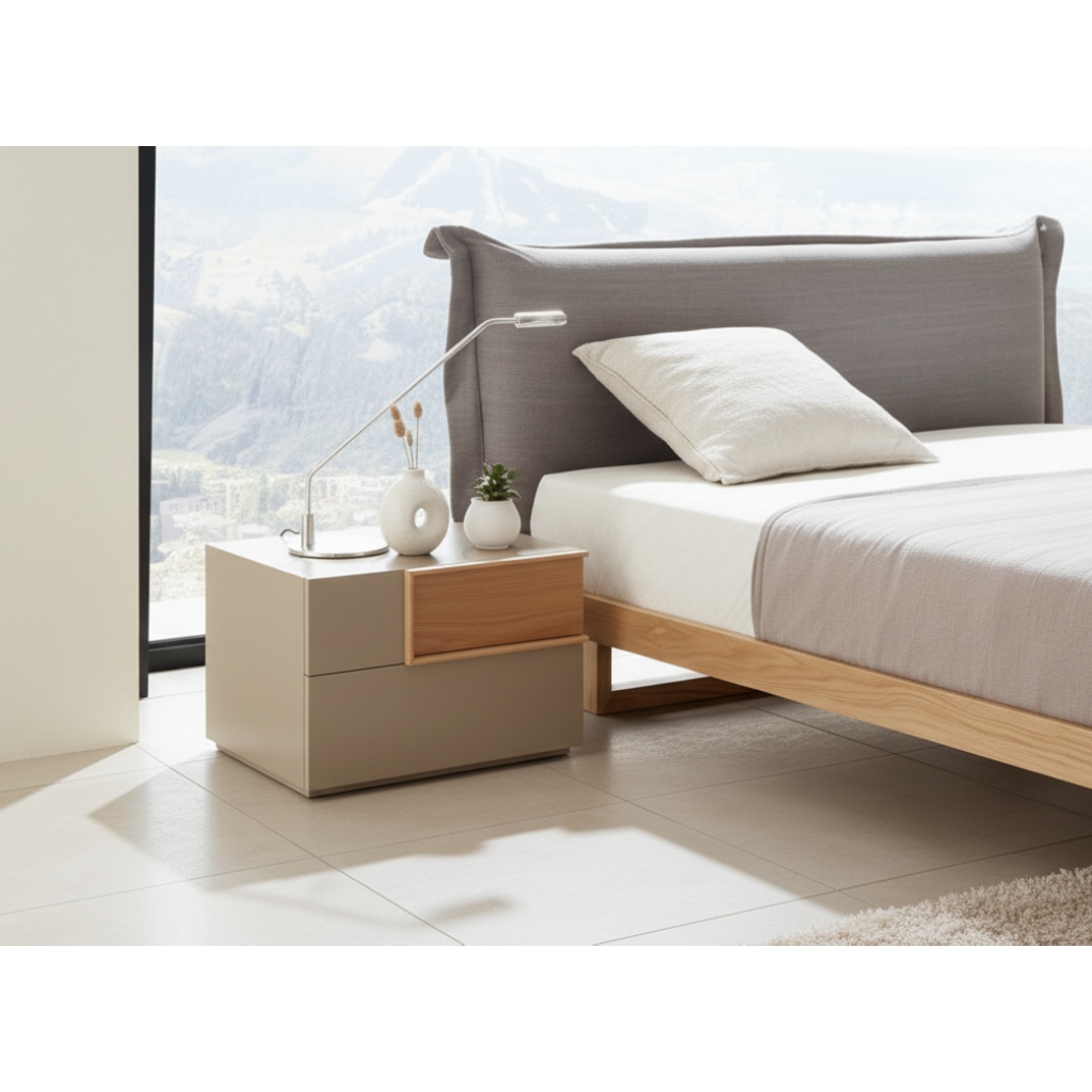 Κομοδίνο SOLID: Μοντέρνο με 2 Συρτάρια και Λεπτομέρεια Μασίφ Ξύλου