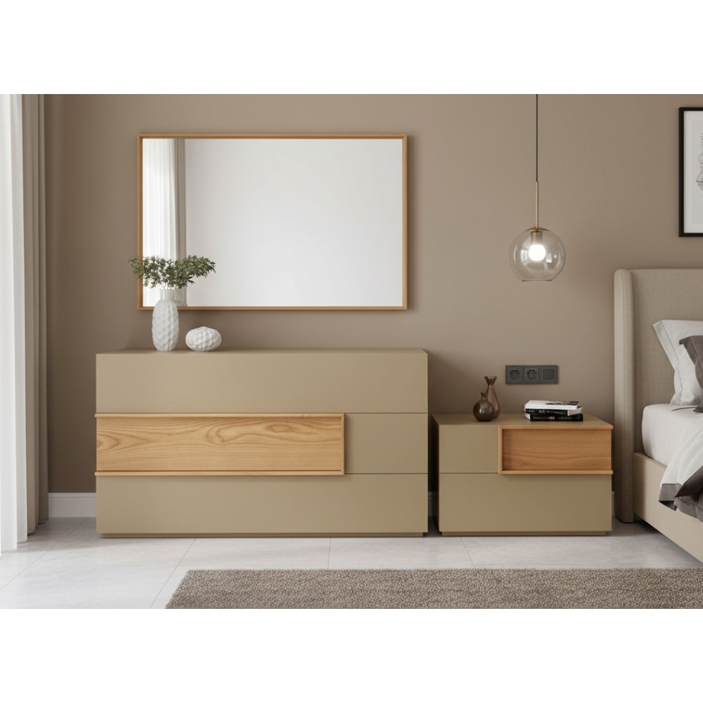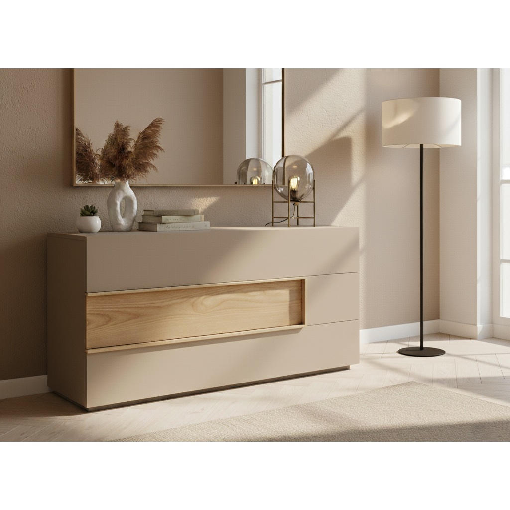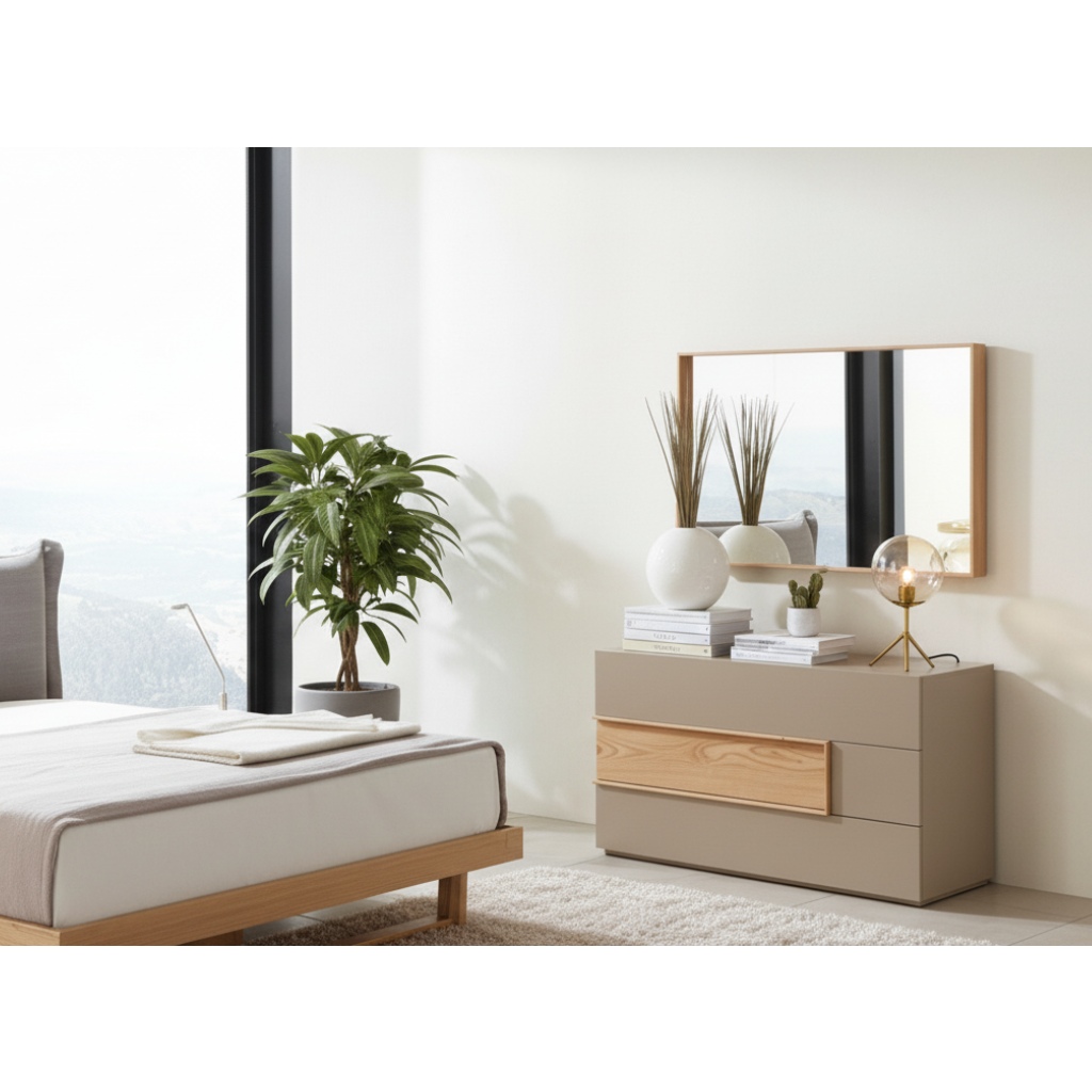 Τουαλέτα Solid: Χαμηλό Προφίλ, 3 Συρτάρια και Λεπτομέρειες Μασίφ ΞύλουΗ Τουαλέτα/Συρταριέρα Solid είναι η ιδανική οριζόντια μονάδα αποθήκευσης, συνδυάζοντας την πρακτική χωρητικότητα με μία εκλεπτυσμένη, χαμηλή αισθητική. Με ύψος 66 εκ., λειτουργεί ιδανικά ως βάση για τουαλέτα (με την προσθήκη καθρέπτη) ή ως μία ευρύχωρη κομότα/συρταριέρα. Η διαθεσιμότητα σε δύο πλάτη, 100 εκ. και 120 εκ., εξασφαλίζει την προσαρμοστικότητα σε κάθε μέγεθος υπνοδωματίου. Το έπιπλο είναι κατασκευασμένο με βάση το φινίρισμα υψηλής ποιότητας, προσφέροντας την επιλογή ανάμεσα σε ζεστό καπλαμά ξύλου (Δρυς/Καρυδιά) ή μοντέρνα λάκα, καθιστώντας το ανθεκτικό και εύκολο στη συντήρηση. Διαθέτει τρία μεγάλα συρτάρια, παρέχοντας άφθονο χώρο για ρούχα και λευκά είδη. Η λεπτομέρεια που αναδεικνύει τον artisanal χαρακτήρα του Solid είναι το πόμολο, κατασκευασμένο από μασίφ ξύλο. Αυτή η χειροποίητη πινελιά προσδίδει ένα φυσικό, οργανικό στοιχείο στο κατά τα άλλα minimal design, καθιστώντας το ελκυστικό για αναζητήσεις που αφορούν τον συνδυασμό minimalism και φυσικών υλικών. Επιλογές & Διαστάσεις: Πρακτικότητα και Οργάνωση: