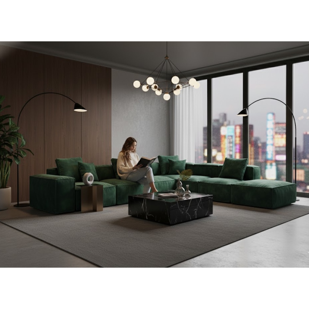 Γωνιακός Καναπές BOX: Αρθρωτή Πολυτέλεια με Μαξιλάρι Πούπουλο