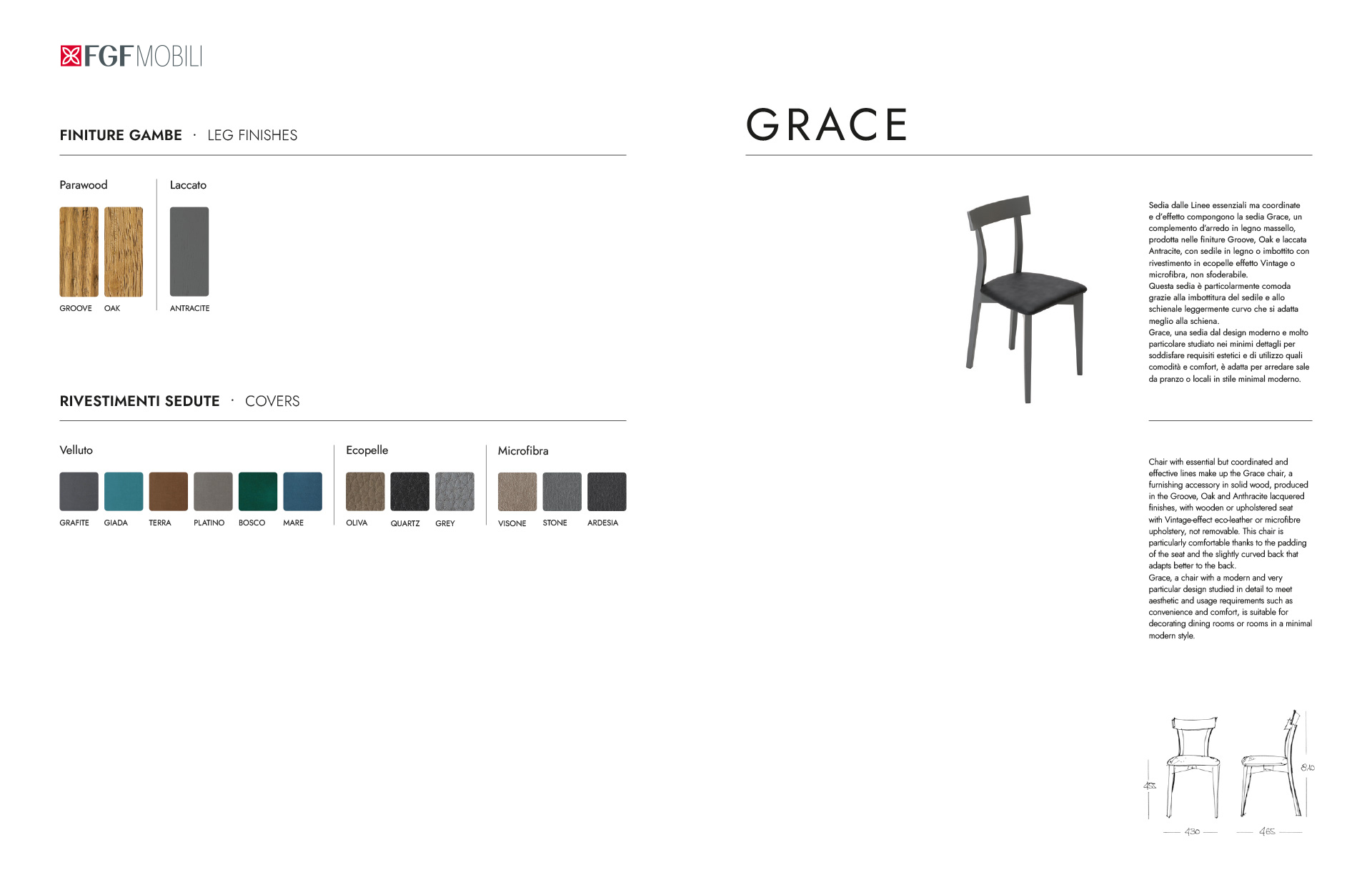 Καρέκλα GRACE Ιταλική καρέκλα με ξύλινο σκελετό. Η καρέκλα διατίθεται με κάθισμα από: