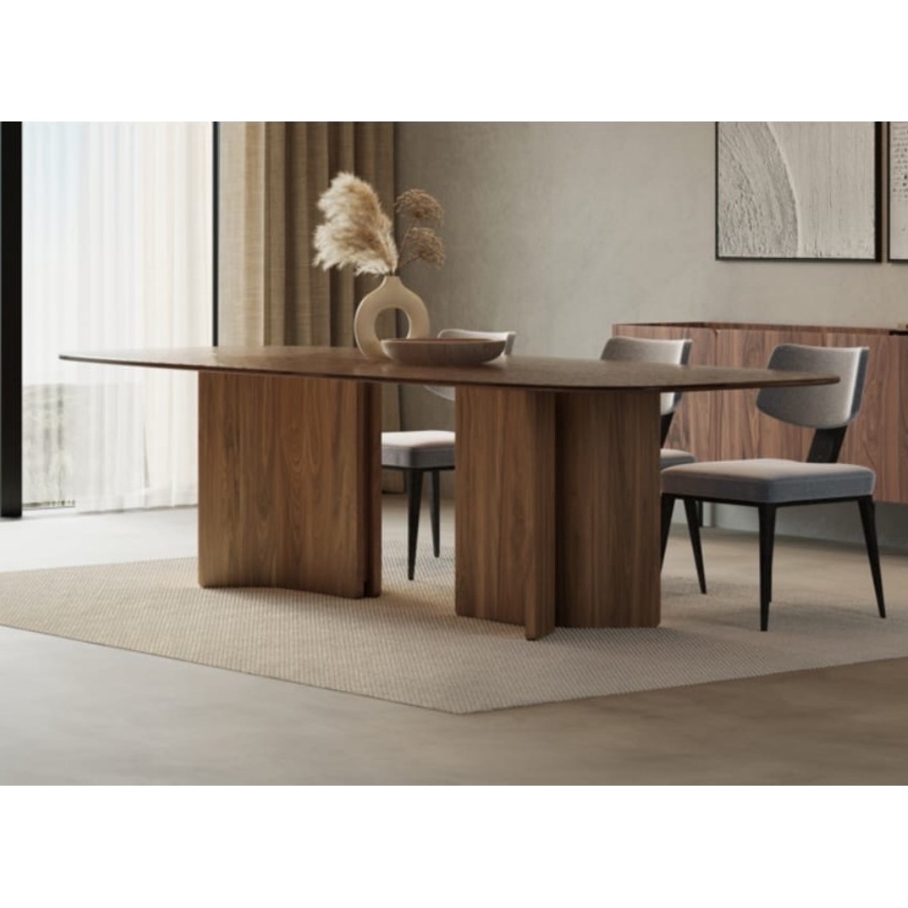 Το Τραπέζι SHADOW 001 αποτελεί μια μοντέρνα και διαχρονική επιλογή για την τραπεζαρία σας. Διαθέτει οβάλ επιφάνεια που μπορείτε να επιλέξετε σε καπλαμά (Δρυς ή Καρυδιά) ή λάκα (ματ ή γυαλιστερή), συνδυασμένη με μια σταθερή, ξύλινη βάση. Η αρμονική γραμμή και η δυνατότητα προσαρμογής σε πολλές διαστάσεις αναδεικνύουν την ποιότητα της Ελληνικής Κατασκευής.