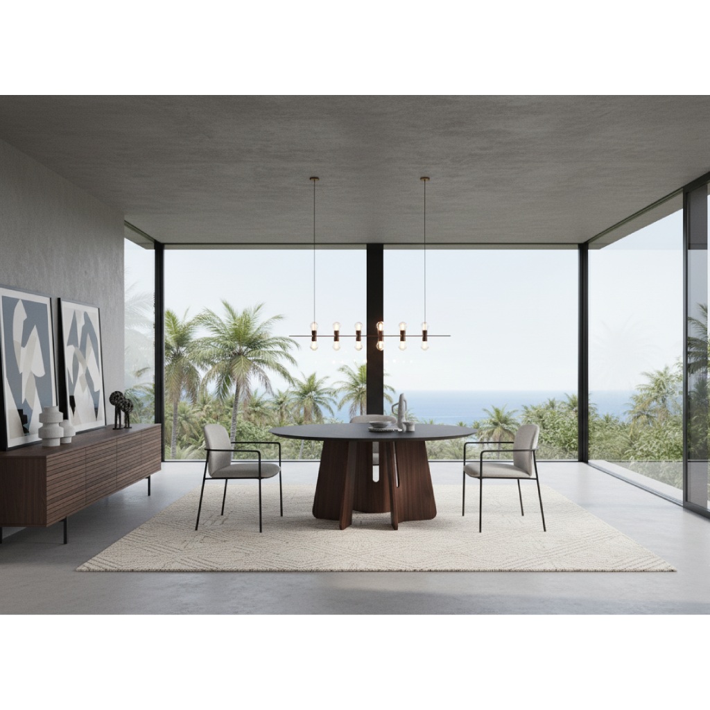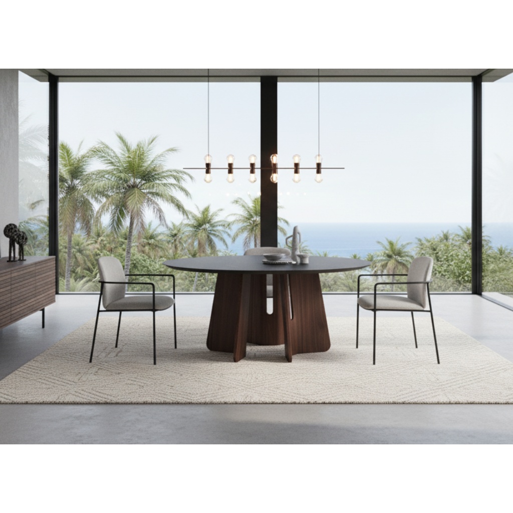 Design, Αντοχή και Πολυτέλεια στο Επίκεντρο της Τραπεζαρίας Το στρογγυλό κεραμικό τραπέζι REVERSE CIRCLE CER 001 είναι ένας φόρος τιμής στη γεωμετρική αρμονία και την υλική αντοχή. Η κυκλική, μονοκόμματη κεραμική επιφάνεια Maxfine προσφέρεται σε 8 ματ ή γυαλιστερά φινιρίσματα, εξασφαλίζοντας απόλυτη αντοχή (γδαρσίματα, θερμότητα). Η φιλοσοφία του ολοκληρώνεται με τη sculptured ξύλινη βάση σε επιλογή από Δρυ, Καρυδιά ή Λάκα Ματ, δημιουργώντας ένα μοναδικό οπτικό εφέ. Ένα μοντέρνο τραπέζι τραπεζαρίας ελληνικού design. |