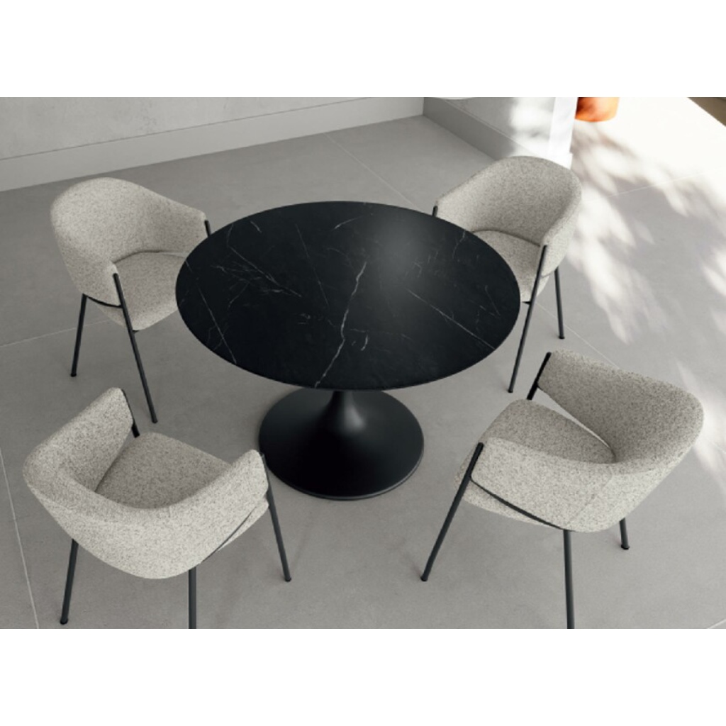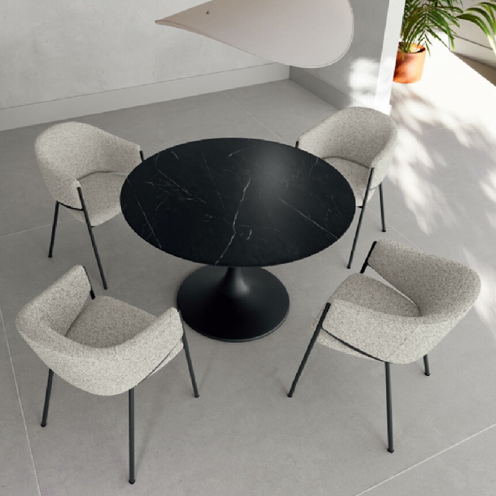 Τραπέζι SIDE: Στρογγυλό Τραπέζι με Κεραμικό Καπάκι και Μοναδική Αρμονία Το τραπέζι SIDE συνδυάζει την ουσιαστική σχεδιαστική προσέγγιση με την ανθεκτικότητα. Design & Υλικά: Η στρογγυλή του επιφάνεια από ματ κεραμικό σε όψη μαύρου μαρμάρου (με λευκές φλέβες) προσφέρει πολυτέλεια και μεγάλη αντοχή σε γρατζουνιές και θερμότητα. Η στιβαρή μεταλλική βάση σε μαύρο ματ χρώμα ολοκληρώνει το σύνολο, προσδίδοντας αρμονία και σταθερότητα. Χρήση: Με διάμετρο 100 εκ. και 120 εκ., είναι ιδανικό για να φιλοξενήσει 4-6 άτομα, αποτελώντας το ιδανικό κέντρο για σύγχρονες τραπεζαρίες, κουζίνες ή ακόμα και επαγγελματικούς χώρους. |
