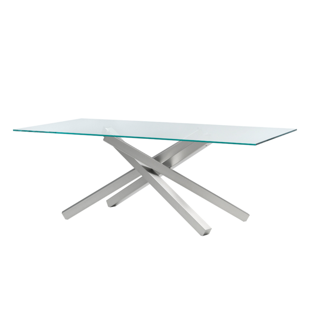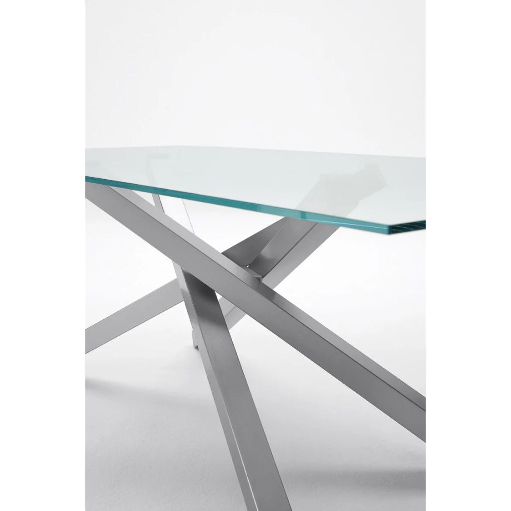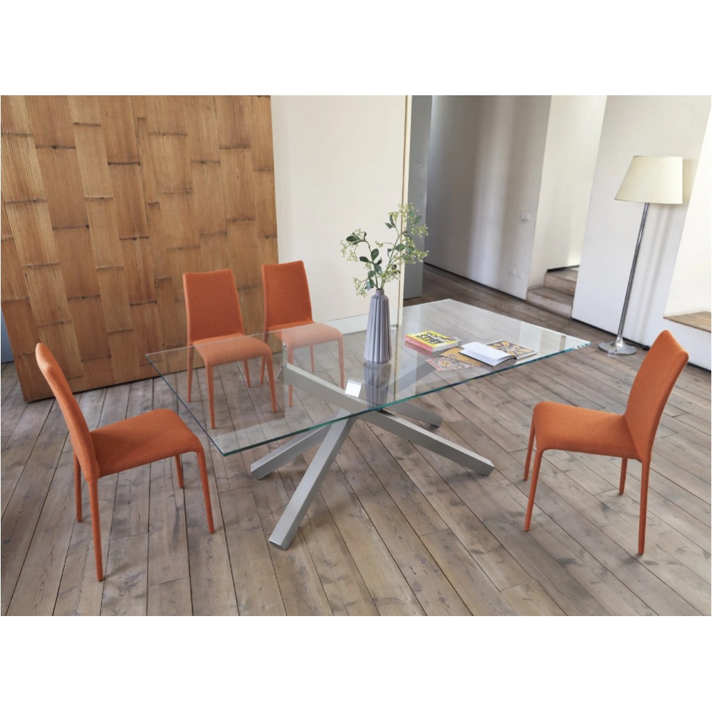 Ιταλικό τραπέζι Pechino με γυάλινη επιφάνεια. Το τραπέζι διαθέτει μοντέρνα κεντρική μεταλλική βάση με επιλογή χρωματισμού. Η επιφάνεια του είναι διαθέσιμη με τις παρακάτω επιλογές: